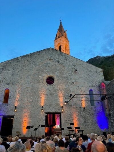 Voir la nuit tomber sur le cloître Saint Dominique au son de la musique reste un moment béni, une parenthèse dans l’été ! Le 29 juillet, Théotime Langlois de Swarte est arrivé dans notre dos, son sibyllin d’un violon accompagné par les cigales ; il est remonté vers la scène parmi les spectateurs, au son d’une …